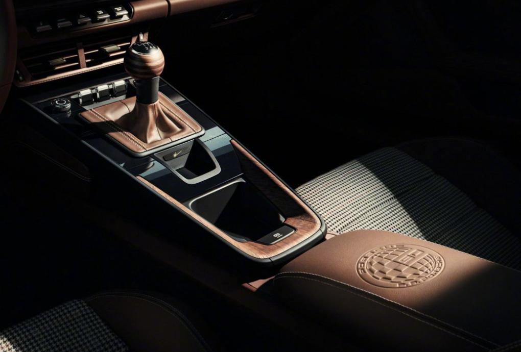 此外,轮毂匹配了1963年的徽章,并且灵感来源于经典的FUCHS轮毂,所以相当个性化,也很有仪式感,与普通版车型的差异很明显。至于尾部,除了拥有横向贯穿样式的尾灯以外,更是匹配了大量的碳纤维材质以及镀锌镀金的徽章造型,格调满满的。