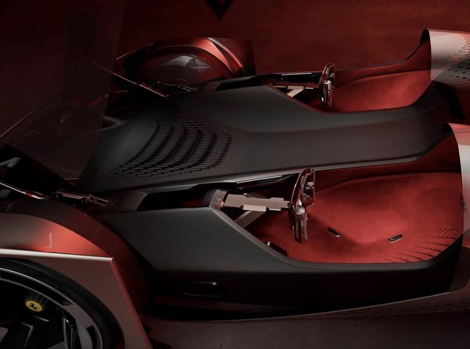 内饰以 “双人共享驾驶体验” 为核心突破,采用独立分离的双座舱布局,两侧前铰链式可提升canopy为乘员提供独特入舱方式。座舱内部摒弃传统中控台,通过线控驱动技术实现方向盘、踏板等所有操控部件的精准同步,让驾驶者与乘客实时共享操控反馈,强化情感共鸣与技术交互。仪表盘采用全息投影技术,可实时显示自定义的动力参数与赛道数据,而极简触控面板则集成了虚拟赛事接入、个性化设置等功能,将未来座舱的便捷性与仪式感拉满。智能交互方面,搭载专属数字助手 “Le Mans Legacy”,能讲解勒芒赛事历史与法拉利技术演进。