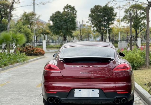 这辆车是2016年的帕纳梅拉4版本,搭载3.0升V6双涡轮增压发动机,功率有三百多马力,扭矩四百多牛米,零到百公里加速只要五六秒钟。想想看,一辆大车,却能跑得这么猛,方向盘一打,推背感来得又狠又稳,简直像坐上了火箭。车身是五门四座的掀背设计,外观那股低趴的运动劲儿,一眼就能认出是保时捷的风格,红色车身在路上开着,回头率绝对高得让人心里美滋滋。内饰用深色调,看着稳重又有档次,坐进去那种包裹感,让人觉得值了。