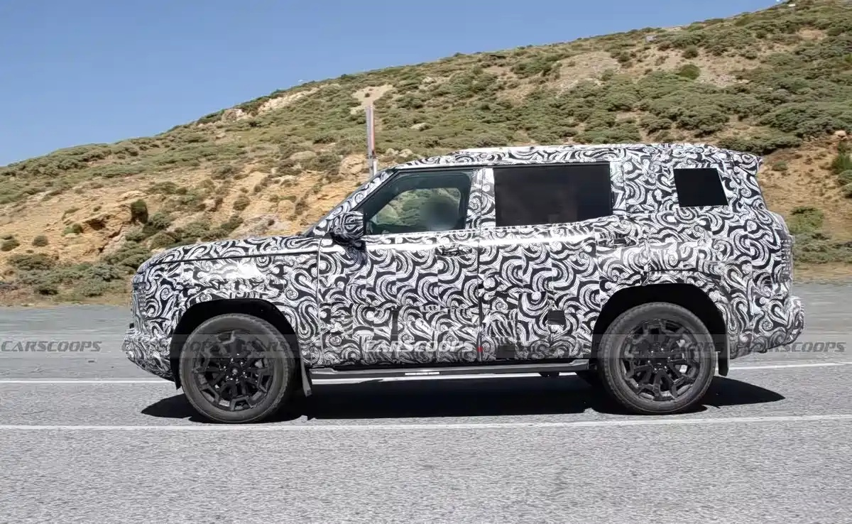 下面一张是侧面谍照,可以看到它采用的是方盒子设计,而且C柱还疑似有小爬梯,这也彰显了新车的野性主题。