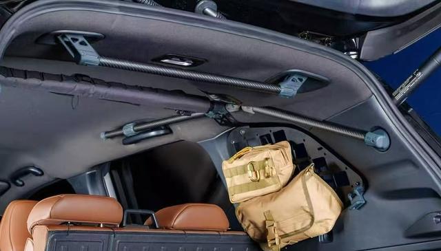 内饰上,该车主要是对后备箱内部进行实用性改造,主要是增加了更多的拓展架,满足不同的实用需求。