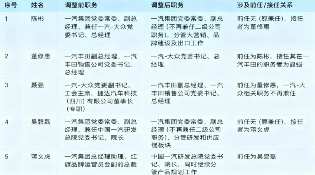 这一系列“换防”的信号再明确不过:一汽的“将军”们正集体从局部战区撤回,回归总指挥部。