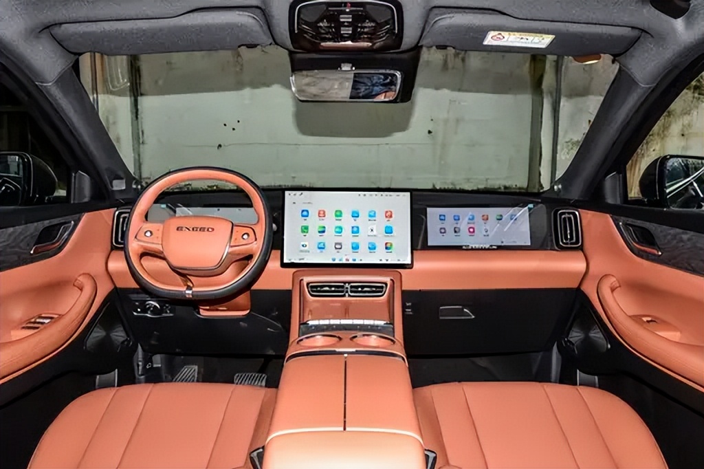 进入车内,星途ET5的内饰设计给人强烈的豪华感与科技感,整体布局清晰、层次分明。内饰使用软质皮革包裹与木纹饰板点缀,触感细腻,视觉效果温润。最引人注目的是其三联屏设计——10.25英寸液晶仪表、15.6英寸悬浮中控屏以及12.3英寸副驾娱乐屏,三块屏幕通过无缝联动,形成了环抱式视觉体验。
