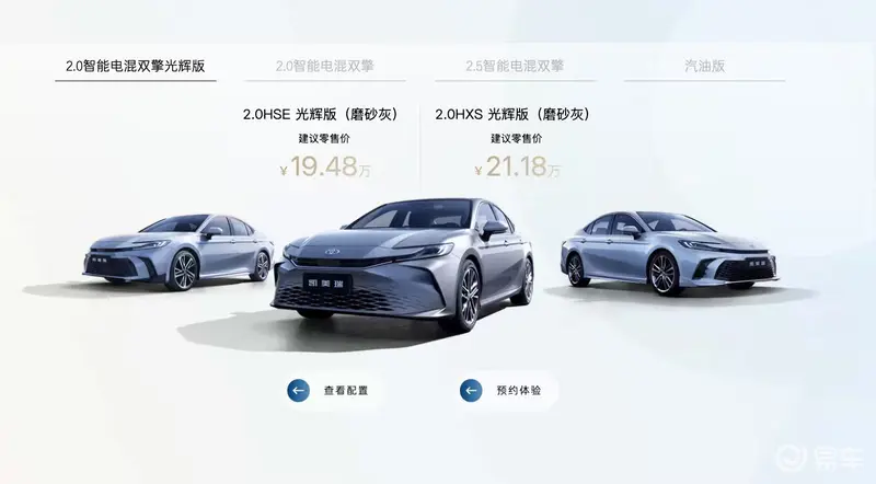 1月8日的确是个非常热闹的日子,广汽丰田凯美瑞同样宣布两款新车型上市,分别为2.0HSE 光辉版和2.0HXS 光辉版,售价分别为19.48万元和21.18万元。此次新车不仅提供专属的磨砂灰外观配色,同时还在整车配置方面进行一定的升级,那么新车整体表现究竟如何呢?