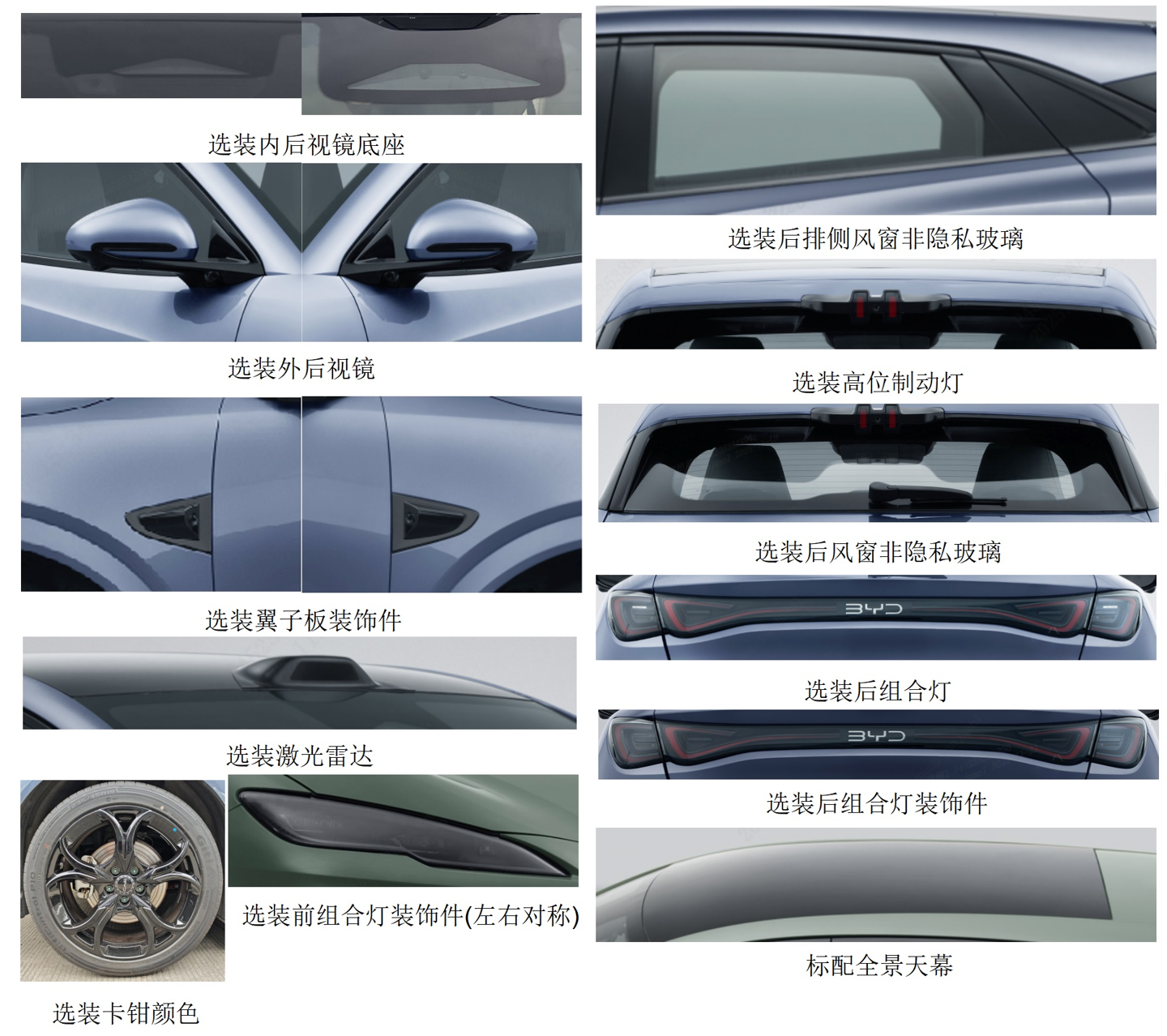 IT之家附各车型申报图(提及“可选激光雷达”的在售车型及未上市的新车型)如下: