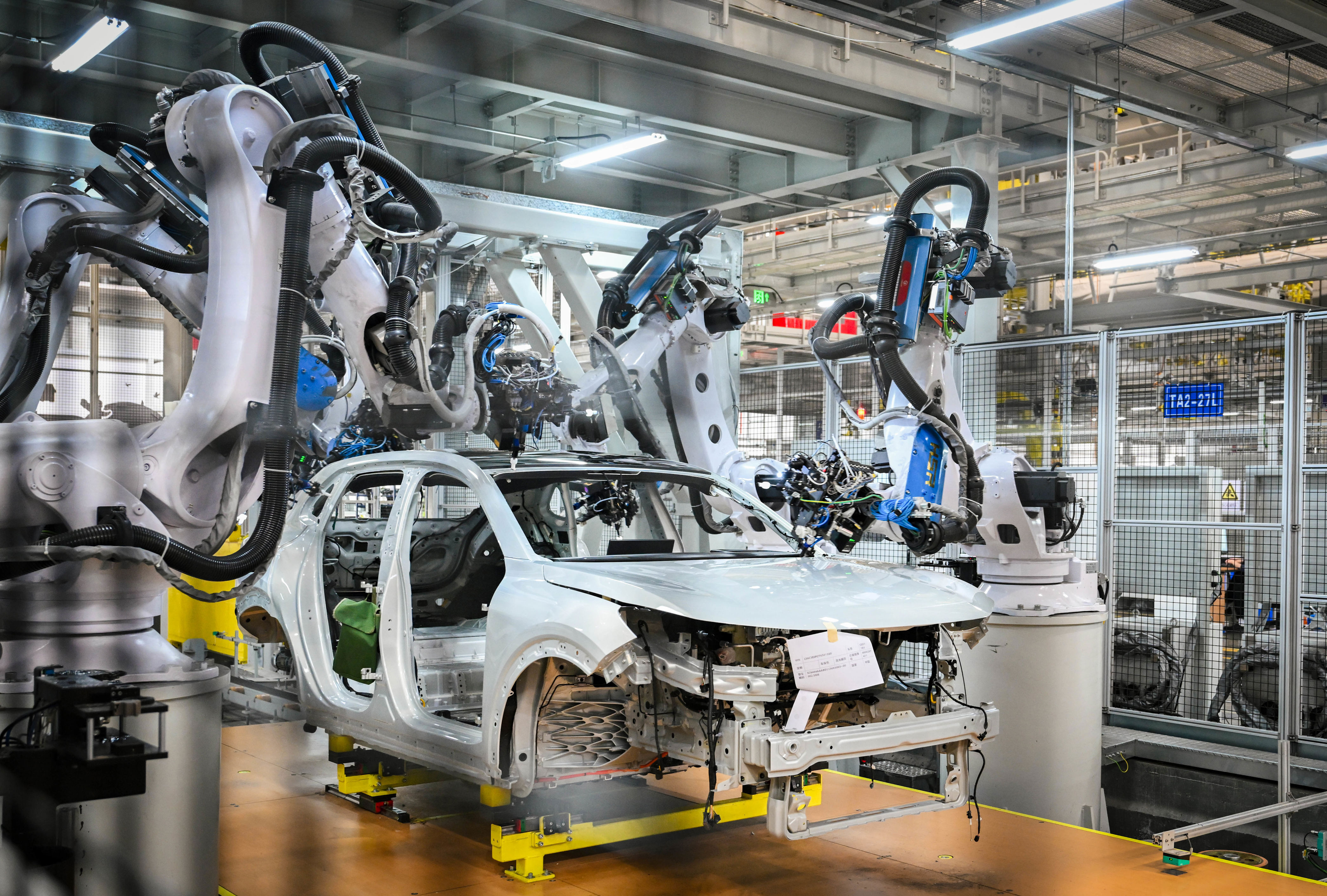 ▲2026年1月26日,位于两江新区的长安阿维塔数智工厂,机器手臂正在进行涂胶作业。记者 张锦辉 摄