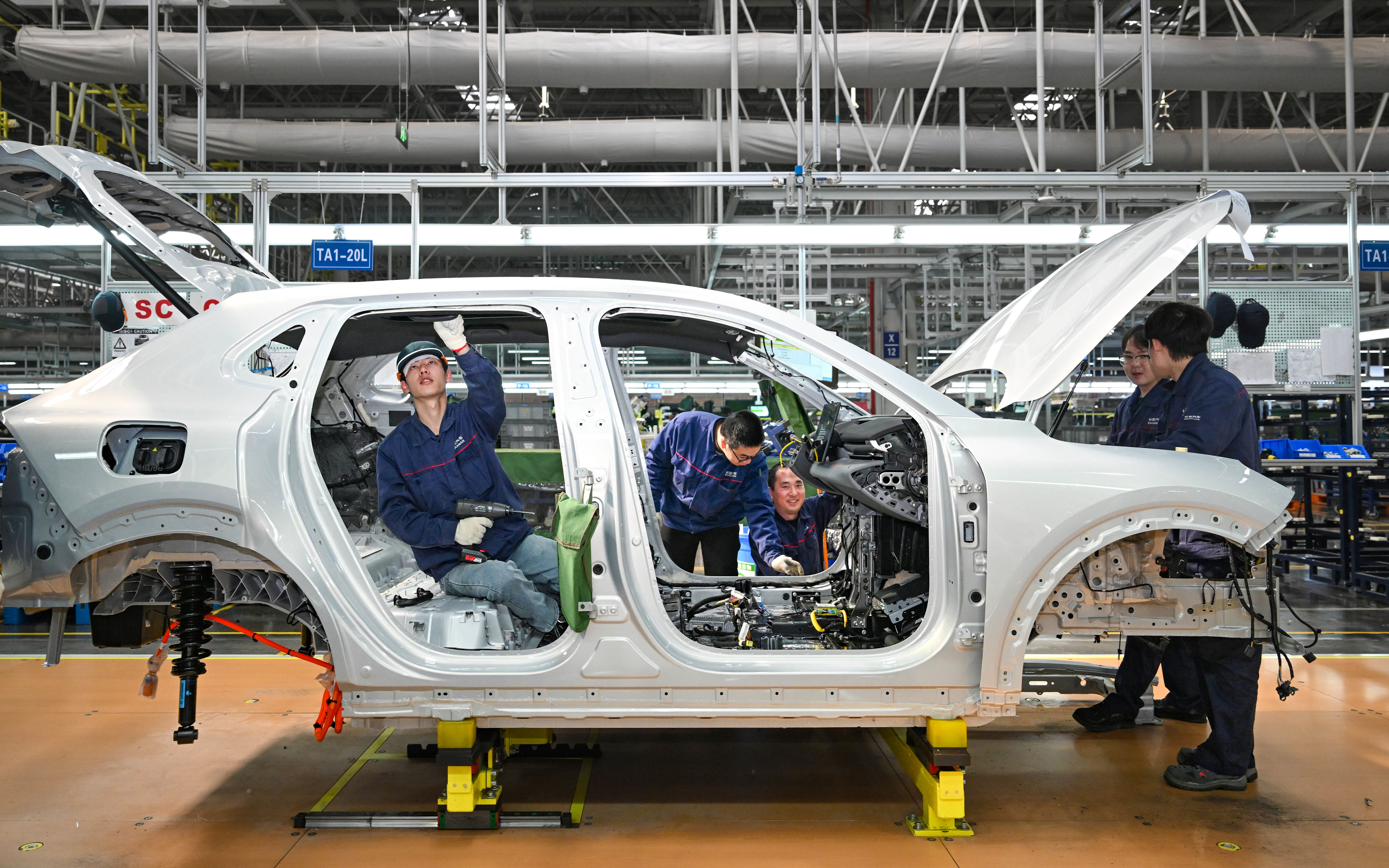 ▲1月26日,位于两江新区的长安阿维塔数智工厂,工人在总装车间作业。