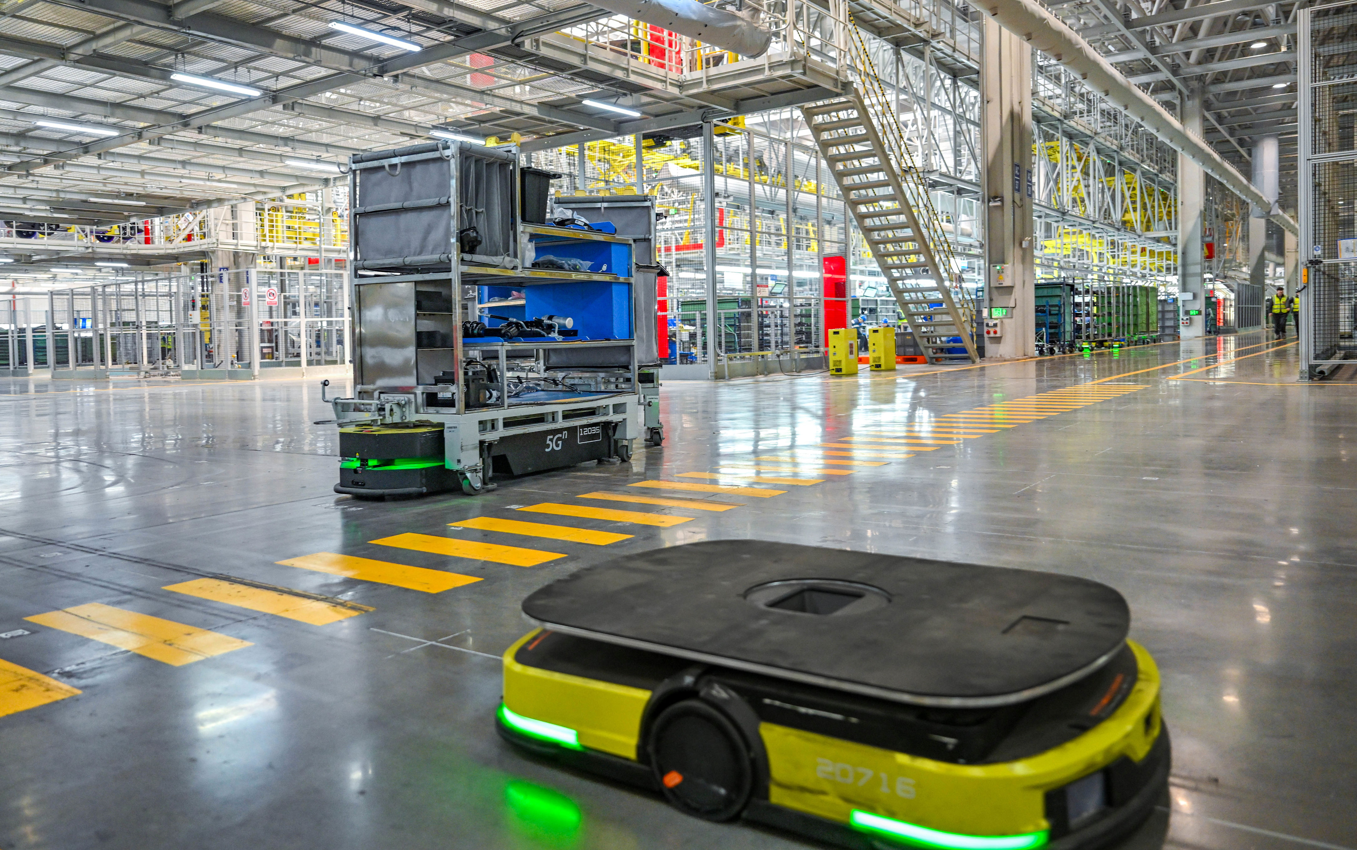 ▲1月26日,位于两江新区的长安阿维塔数智工厂,AGV物流机器人正在奔忙。
