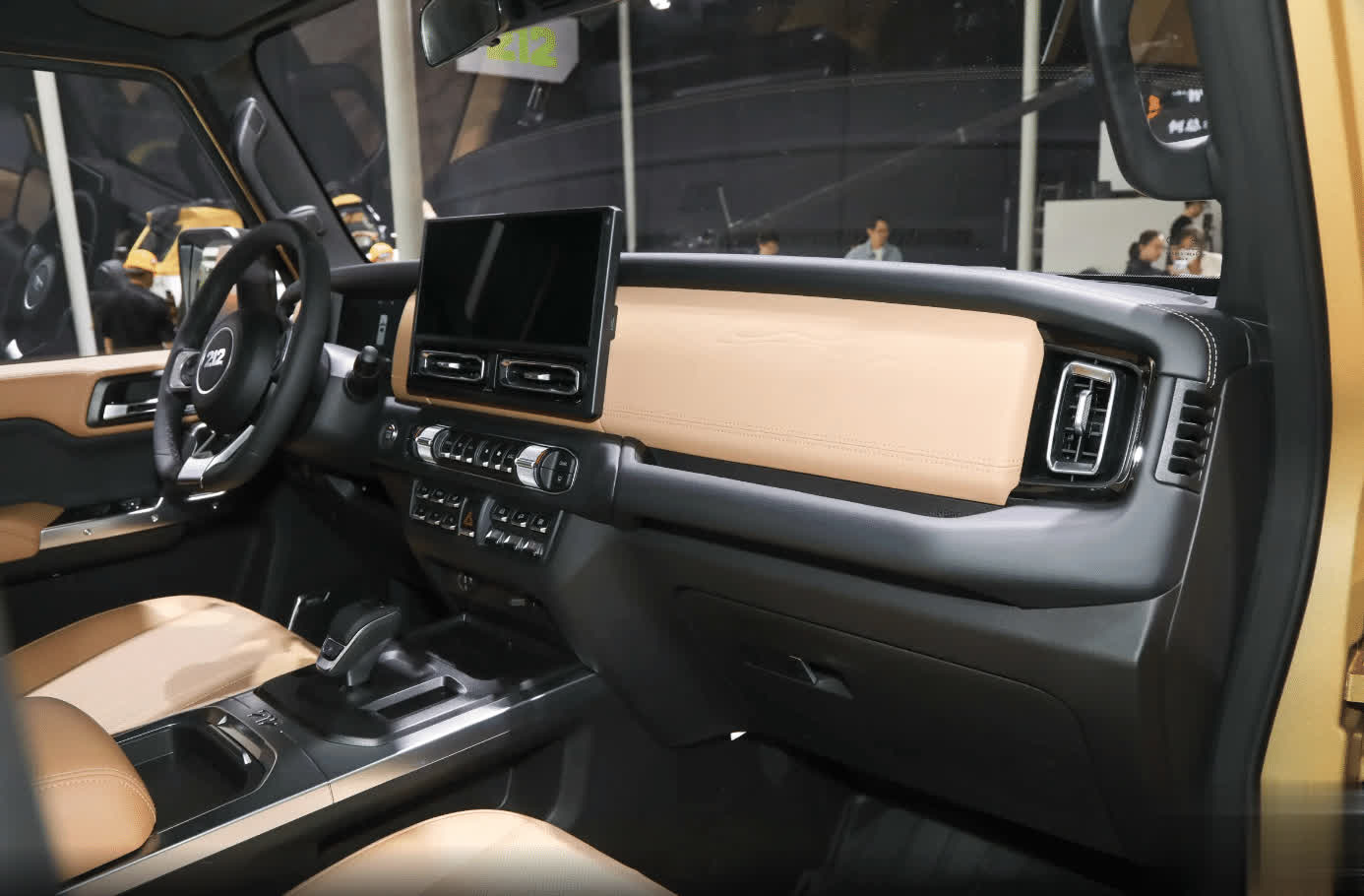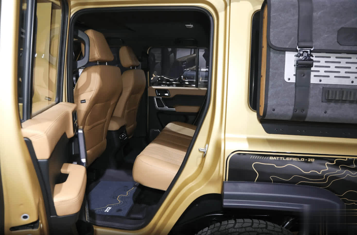首先212 T01高地版本车型进行了原厂改装之后尺寸确实相比标准版是要更大的,车身长度达到4811mm,宽度做到1945mm,轴距2860mm,这已经和当年大家印象当中的老北京212完全不同了,现在名义上虽然还是紧凑级suv,但实际上轴距甚至超过一些所谓的中大型suv,比如相比坦克500还是略长一些,所以这款车现在要论空间上的实用性,其实比20万级别的坦克300要宽敞。
