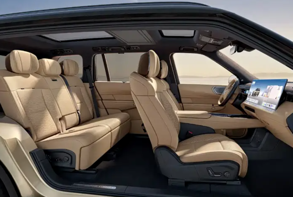 内饰同步推出云绒棕主题色调,氛围温润轻奢。相比六座版,五座版取消第三排,二排腿部空间拓展至1120mm,纯平地板让中间乘客更舒适。二排三座均采用高等级Nappa真皮包覆,标配加热、电动调节与腿托,还可形成1.35m×0.85m的儿童休憩空间,家用贴心度拉满。