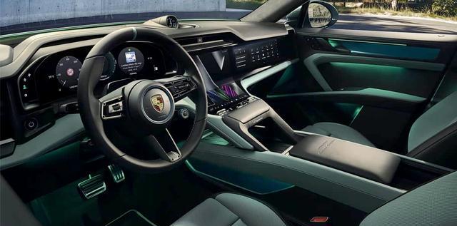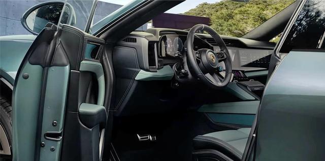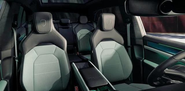 内饰首发Interior Style Package内饰风格套件(全系纯电Cayenne可选装),主打黑+绿双拼配色,与绿色车漆内外呼应。绿色装饰线条贯穿车门、方向盘、中控台,搭配头枕保时捷盾徽刺绣、绿色缝线与铝制饰板,豪华感与专属感进一步提升。