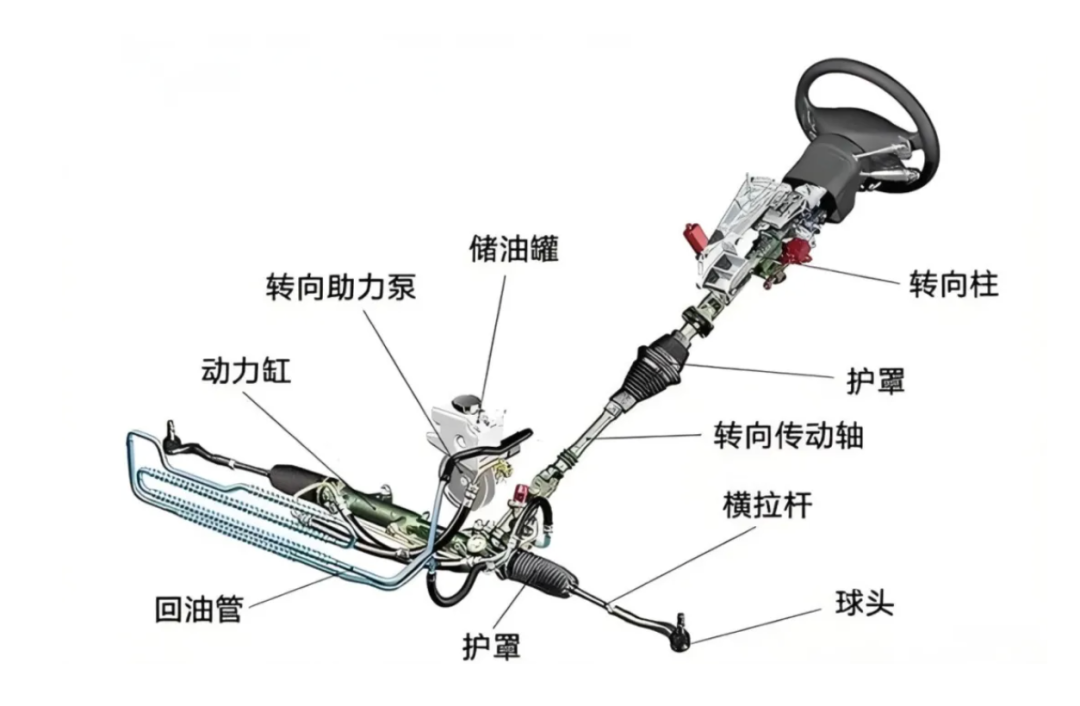 传统的转向系统不管助力大小,方向盘与车轮始终通过一系列机械结构紧密连接。
