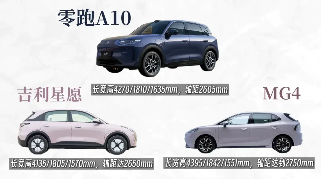 先看尺寸,它没有为了“看起来大”而把自己搞肿,4米27的车长,2米6的轴距,跟吉利星愿比,就是长了那么一丢丢、高了一点点,跟MG4比,又小了一圈。