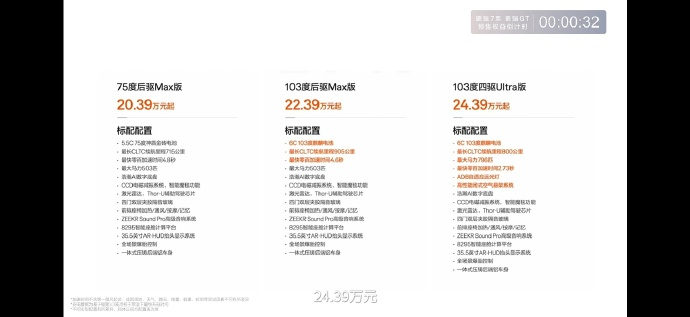 价格方面,焕新极氪007上市权益后限时价19.39万元-23.39万元;焕新极氪007GT上市权益后限时价为19.39万元-23.39万元。同时,极氪品牌五周年之际特别推出的限定版本——极氪001五周年纪念版也正式开启限量发售,零售价36.5万元起。