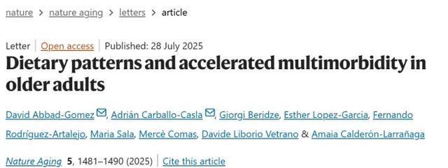 近日,瑞典和西班牙的科研团队在《Nature Aging》重磅发表了题为《Dietary patterns and accelerated multimorbidity in older adults》的研究,填补了这一领域的空白。