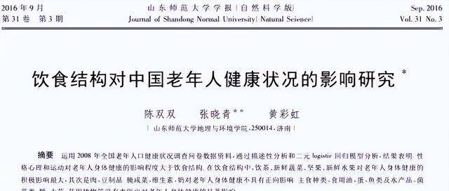 [1]陈双双.饮食结构对中国老年人健康状况的影响研究, 山东师范大学学报(自然科学版), 2016-09-15.