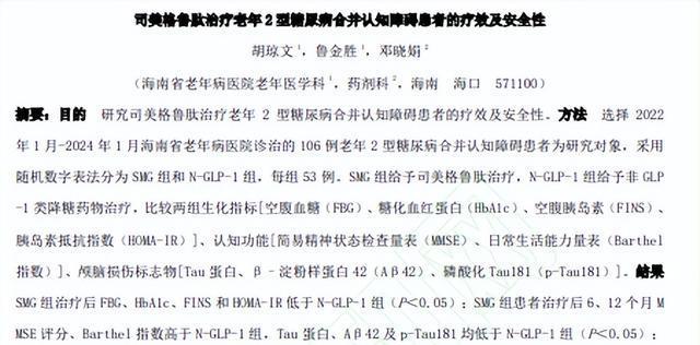 司美格鲁肽治疗老年2型糖尿病合并认知障碍患者的疗效及安全性网络首发胡琼文:鲁金胜:邓晓医学信息2025-09-30