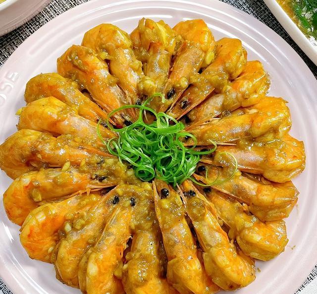 大虾:300g、蒜末:2汤匙(多放一些)、原味咖喱块:1块、葱丝:少许、油:适量、清水:适量
