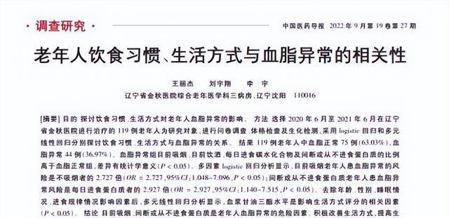 王丽杰. 老年人饮食习惯、生活方式与血脂异常的相关性,2022-09-25.
