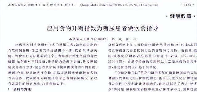 [1]丛媛.应用食物升糖指数为糖尿患者做饮食指导, 山西医药杂志(下半月刊) ,2010-11-25