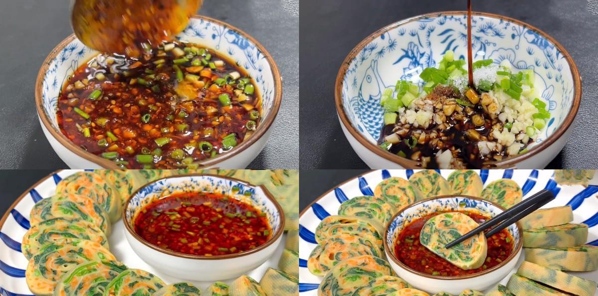 8、趁蒸的时间 准备一些凉拌汁,大蒜小葱 生姜都给切碎 再放进碗中,然后再准备些小米辣,给切成辣椒碎 然后再放碗中,添加热油 激发出香味,然后再添加盐 鸡精 蚝油 生抽 香油 胡椒粉 白糖 再给充分的搅拌入味 放在一边备用