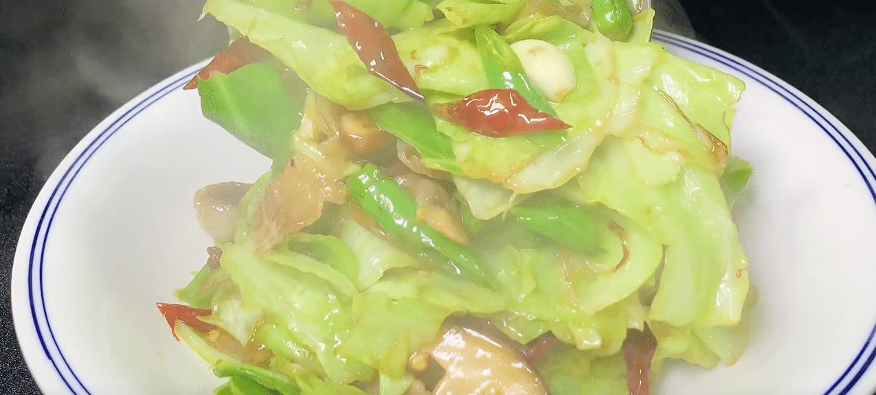 6、起锅烧油 放入包菜炒一炒,小火慢炒,炒到包菜颜色翠绿,断生的时候 炒好的包菜再盛出备用