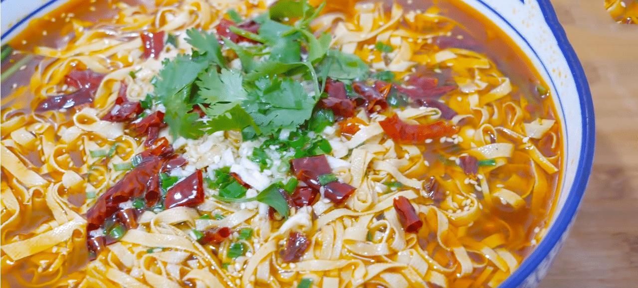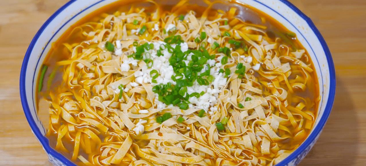 8、接下来往里面放入葱姜蒜末 再放入辣椒段 然后放入葱花 浇入热油 激发出香味,美味好吃的水煮豆腐皮就做好了。