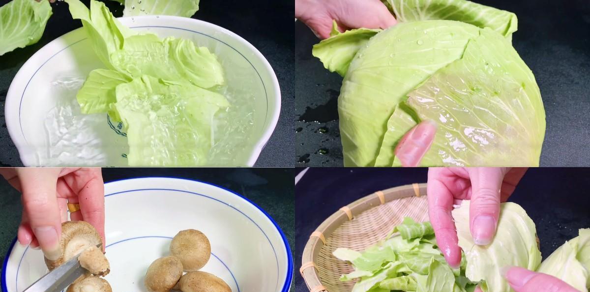 所需食材:包菜 香菇 肉 青椒 红椒 淀粉
