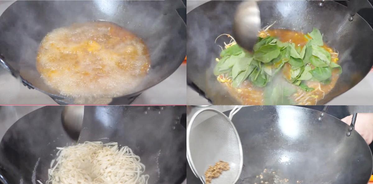 5、锅中烧油 放入葱姜蒜爆香,然后再放入一些豆瓣酱或者是火锅底料,给炒一炒,小火炒入味,然后再倒入开水,大火给煮开,然后再放入蔬菜 豆芽煮熟,断生后 再给捞出 放进碗中