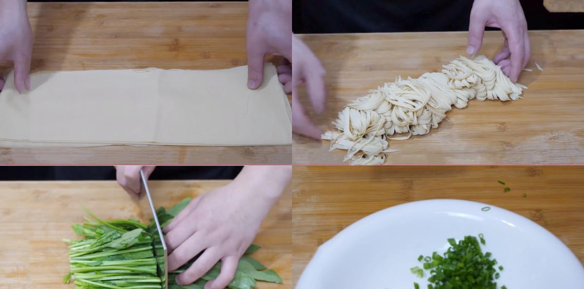 1、准备一些新鲜的豆腐皮 先给豆腐皮清洗一下,多清洗几遍,这样可以去掉豆腥味,然后再给豆腐皮折叠起来,给豆腐皮切成细一点的豆腐丝,尽量切得细一点,弄好再给放进碗中备用