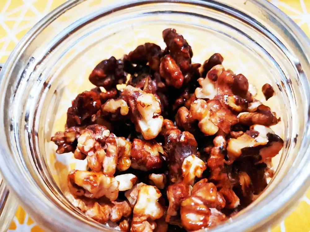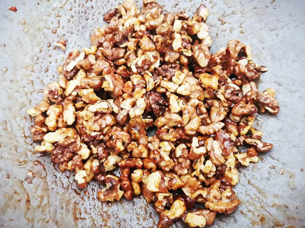 4、关火后将其倒在不粘纸上,摊开摆放,晾凉后,糖汁也凝固了,届时装起来,密封存放,经常吃一些,解馋又营养。