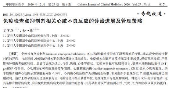 [1]艾罗燕.免疫检查点抑制剂相关心脏不良反应的诊治进展及管理策略, 中国临床医学, 2020-12-24