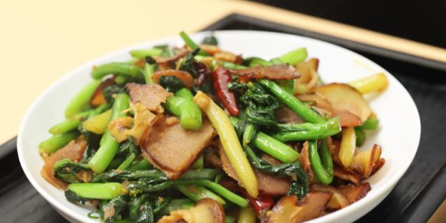 (2) 炒腊肉时要使用中小火,以免腊肉炒焦,产生苦味。