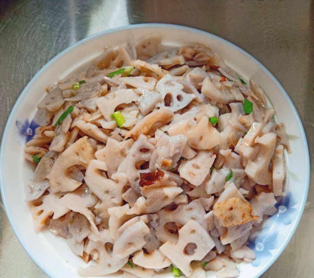 莲藕去皮切片,瘦肉切片,用料酒、生抽、淀粉腌制10分钟。