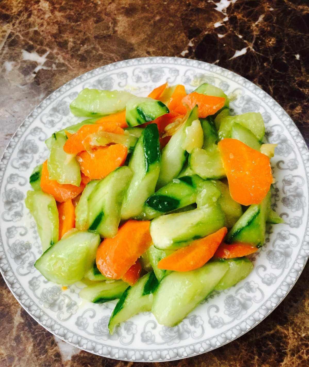 准备胡萝卜、黄瓜、大蒜、食盐、食用油。