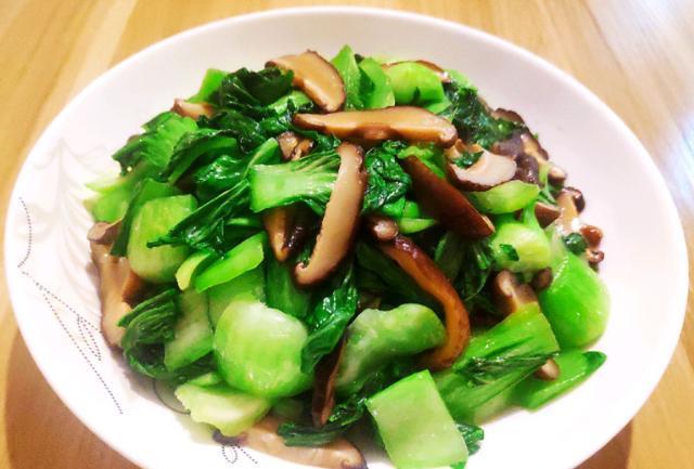 6. 加入青菜:将青菜放入锅中,与香菇一起翻炒,青菜会出一些水分,不用加水。