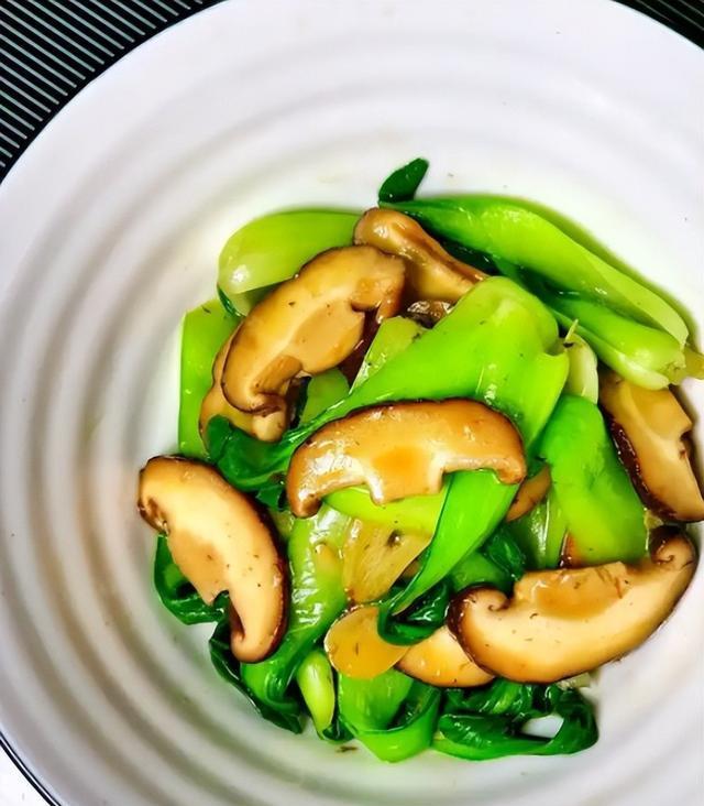 7. 快速翻炒:炒至青菜变软并且与香菇完全混合,调味均匀。如果锅内稍显干燥,可以加入少量的清汤或水,继续翻炒至青菜完全熟透,香气四溢。