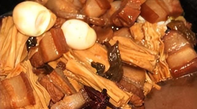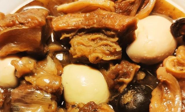材料:腐竹 100 克、鹌鹑蛋 12-15 颗、生姜 3 片、大葱 1 根、干辣椒 2-3 根(可选)、生抽 2 汤匙、老抽 1 汤匙、料酒 1 汤匙、盐 适量、白胡椒粉 适量、糖 1 茶匙、食用油 适量、清水 适量