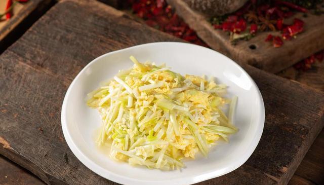 4. 炒鸡蛋:将打散的鸡蛋倒入锅中,待鸡蛋稍微凝固时,用铲子轻轻翻动,使其均匀炒散。炒至鸡蛋刚熟,呈嫩滑状态,盛出备用。