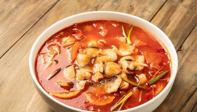 7. 放入鱼片:最后将腌制好的鱼片轻轻放入锅中,煮2-3分钟,至鱼片熟透,汤汁微浓,最后加水淀粉搅拌均匀,收浓汤汁。