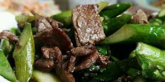 6. 炒牛肉:将腌制好的牛肉片放入锅中,快速翻炒至变色,炒至牛肉刚熟(大约1-2分钟),捞出备用。