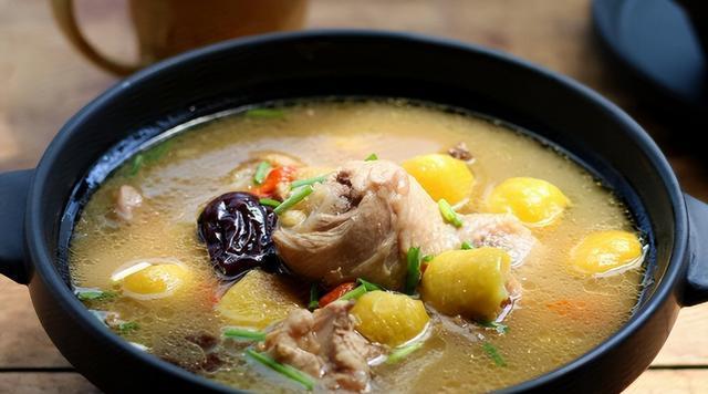 二、板栗土鸡汤: 板栗和土鸡都富含蛋白质和营养元素,搭配煲汤可增加汤的口感和营养价值,有助于增强体力和免疫力。