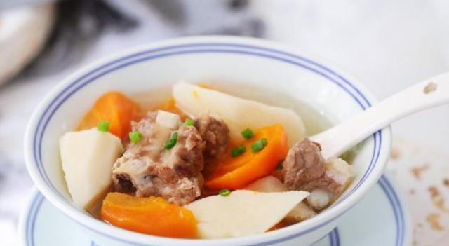 五、山药萝卜排骨汤: 山药和萝卜都富含营养成分,搭配排骨煲汤,能为身体提供丰富的营养,有助于增强体力和免疫力。