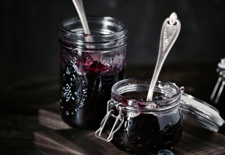 二、蓝莓果酱,保留住蓝莓的鲜味。准备原料:两杯蓝莓、一杯凉开水、半杯白糖和一茶勺新鲜的柠檬汁。