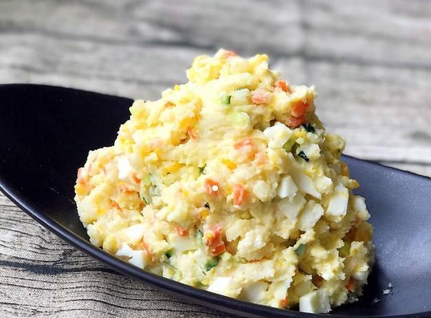 土豆2个,鸡蛋1个,洋葱碎,甜玉米半个,蛋黄沙拉酱。