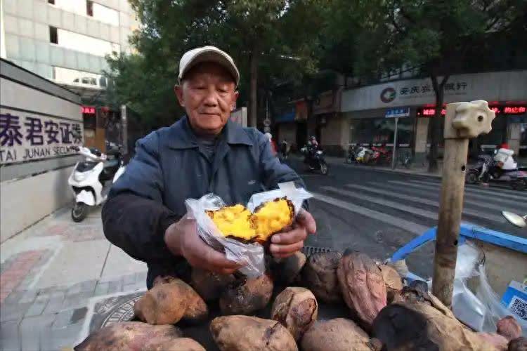 摊主神神秘秘地说:“您可听说啦,这红薯可不能多吃,吃多了血管会变脆嘞,像咱这把年纪的,吃太多对血管健康没好处,可得悠着点。”
