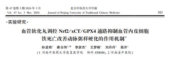 [1]孙孟艳.血管软化丸调控Nrf2/xCT/GPX4通路抑制血管内皮细胞铁死亡改善动脉粥样硬化的作用机制,北京中医药大学学报,2024-01-18.