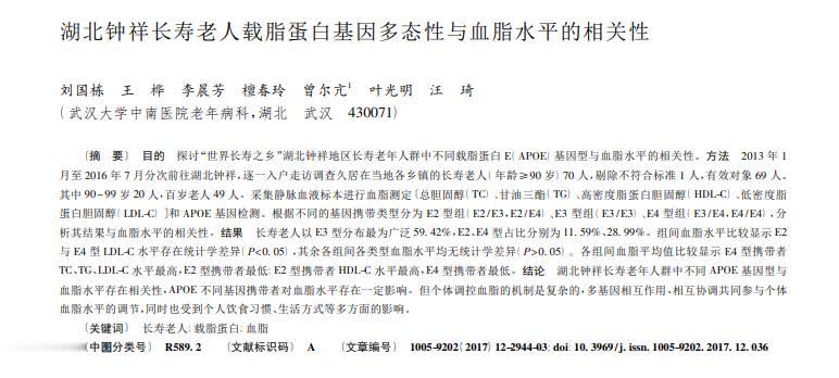 [1]刘国栋.湖北钟祥长寿老人载脂蛋白基因多态性与血脂水平的相关性 ,中国老年学杂志,2017-06-25