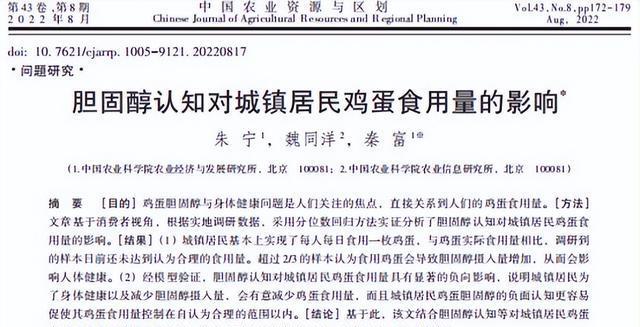 [1] 朱宁.胆固醇认知对城镇居民鸡蛋食用量的影响,中国农业资源与区划,2022-08-25