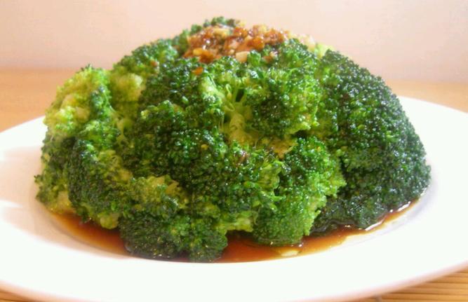 做法:西兰花洗净切小朵,水烧开后焯水。锅中加油,放入切碎的大蒜炒香,加入西兰花快速翻炒,加盐调味。